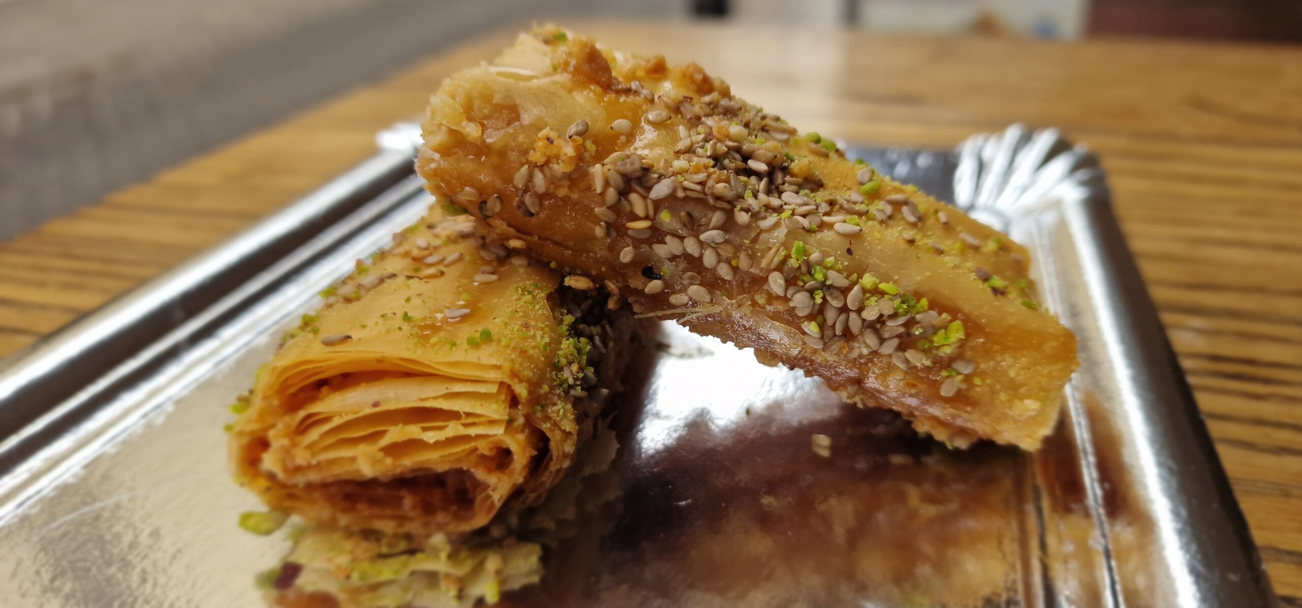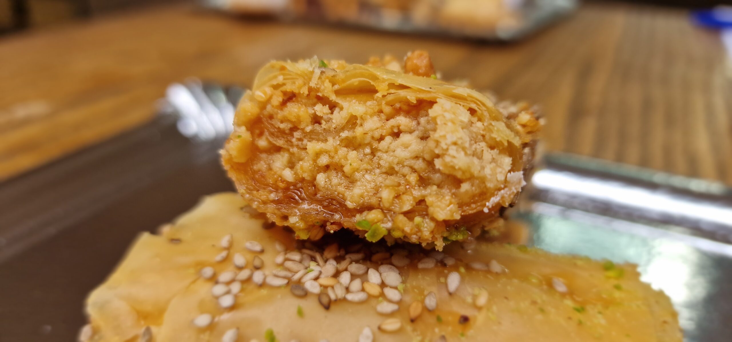 Delicioso dulce tradicional elaborado con masa tierna y delicada, relleno de dátiles naturales y acompañado de un toque crujiente de sésamo. Una combinación perfecta de dulzura y textura que lo convierte en un bocado ideal para postre, snack o acompañamiento de café y té.